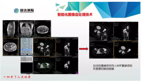 康達(dá)“智速”磁共振采用的智能化圖像后處理技術(shù)無需人工干預(yù),自動將重建序列傳入MIP重建得到所需要的解剖圖像。在AI技術(shù)助力下,能完成五期動態(tài)增強(qiáng),單期掃描時間僅需15秒。
