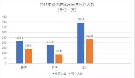 據(jù)國家癌癥中心2019年1月發(fā)布的中國癌癥報告統(tǒng)計,惡性腫瘤死亡占居民全部死因的23.91%,且發(fā)病率連續(xù)十幾年呈持續(xù)上升趨勢,2015年(全國腫瘤中心登記數(shù)據(jù)通常滯后3年,2015年為最新的數(shù)據(jù))惡性腫瘤發(fā)病約392.9萬人,死亡約233.8萬人,平均每天有約1萬人確證為惡性腫瘤,每分鐘有7.5人確診,環(huán)比過去10年數(shù)據(jù),惡性腫瘤發(fā)病率每年有3.9%增幅,死亡率有2.5%增幅。
