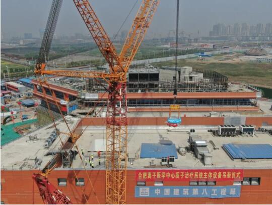 合肥離子醫(yī)學中心質(zhì)子治療系統(tǒng)主體設(shè)備吊架儀式現(xiàn)場,一窺質(zhì)子安裝的工程體量。