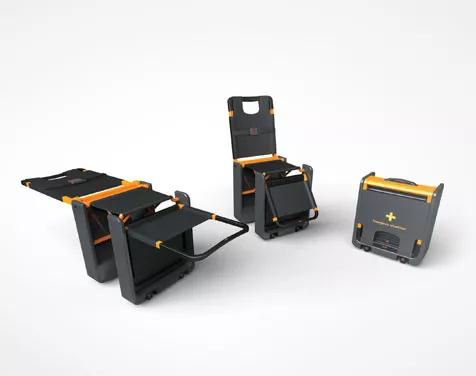 EMERGENCY WHEELCHAIR是一種用于緊急狀態(tài)下的輪椅,可用于運送生病或受傷的火車乘客。使用時,僅需要按下按鈕,便可抬起一個手柄成為輪椅的后部,然后伸展設備的主體以形成座椅結(jié)構(gòu),輪椅的結(jié)構(gòu)形成,鎖定點以保護整個結(jié)構(gòu)。當存放輪椅時,可以將椅子的主體和椅背折疊成緊湊的盒子。