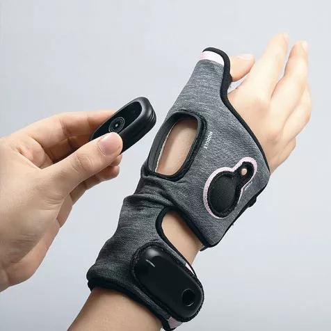 這是一款創(chuàng)新的手部保護裝置,專為慢性手部受傷及病癥設計。因受傷或者是長時間保持不良姿勢工作,導致手部出現(xiàn)持續(xù)性疼痛,已經(jīng)成為現(xiàn)代生活中常見的病癥,HANDICARE 是一套針對觸發(fā)手指綜合癥的智能手部康復設備,它通過使用APP來檢測手部肌肉施加的力,進而激活可更換的電療(振動)模塊以緩解疼痛點。