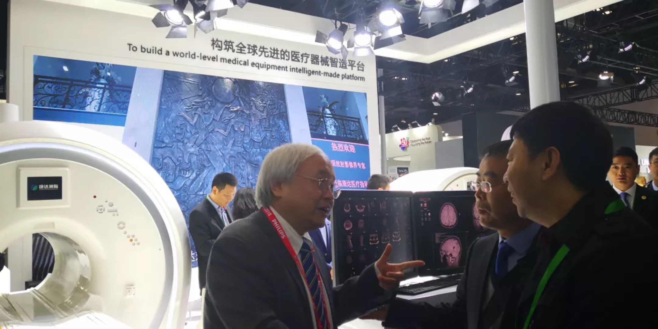 中國放射學(xué)家、中華醫(yī)學(xué)會放射學(xué)分會主任委員、北京協(xié)和醫(yī)院放射科主任金征宇一行也特意來到了康達(dá)洲際展臺。金征宇教授在聽取了康達(dá)的工作人員對康達(dá)洲際1.5T磁共振等一系列產(chǎn)品的介紹后,對康達(dá)洲際在產(chǎn)品的研發(fā)和創(chuàng)新上給予了高度肯定。