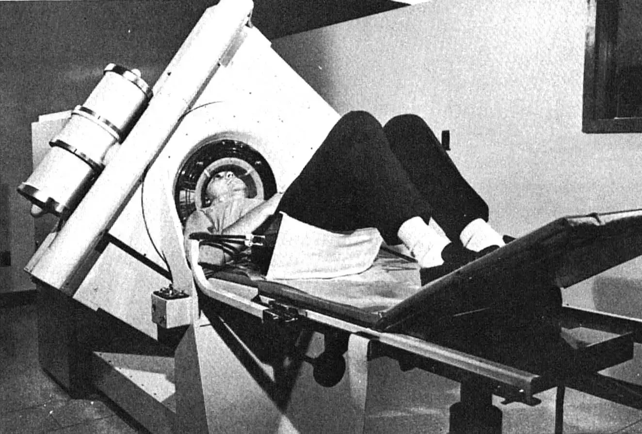 Dr.James Ambers: “這是我制造的第一臺(tái)CT機(jī),它在1971年時(shí)就被放在這里。同年10月1日,我們用這臺(tái)機(jī)器第一次為我們的病人做了掃描。這名病人其實(shí)是一位中年婦女,他被懷疑大腦左前葉長有腫瘤,我們通過掃描儀看到了她的大腦的大量細(xì)節(jié),這比我們預(yù)想的還要多。我們可以看到大腦皮層、白質(zhì)、腦室系統(tǒng)和可疑性腫瘤,腫瘤的位置就在這名病人的大腦前葉顯現(xiàn)出來。我們成功的操作了掃描機(jī),這個(gè)結(jié)果使我和Honsfield高興的蹦蹦跳跳就像是一個(gè)剛剛進(jìn)球的足球運(yùn)動(dòng)員?!?