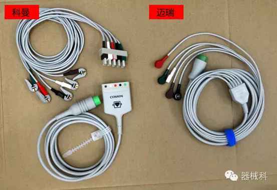 科曼采用防除顫分體夾式5導(dǎo)聯(lián)線,分纜長度為LA,RA,V導(dǎo)聯(lián)1米;RL,LL導(dǎo)聯(lián)1.6米;邁瑞采用防除顫一體扣式5導(dǎo)聯(lián),分纜統(tǒng)一為0.6米,主纜部分長度一樣。導(dǎo)聯(lián)線上的分纜,容易損壞。如果只是分纜換了,分體式只用換掉分纜就行了,而一體式只能換掉附件,減少不必要的浪費(fèi),提高使用率,節(jié)約成本。