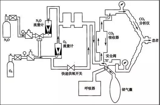 半開放式:無CO2吸收裝置,有部分呼出氣體被重復(fù)吸入;