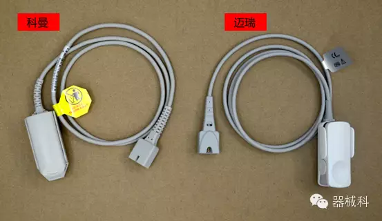兩家使用的血氧探頭有明顯的區(qū)別。科曼的看上去更邁瑞的設(shè)計看起來新超大氣,顏色更白。不知道用久了,會不會發(fā)黃變色??戳艘幌绿筋^的發(fā)光管和接收管,居然是一樣的,從發(fā)光管和接收管的外形上看用的都是OSI的,看來在這一點上大家都比較認可這家頂級老牌生產(chǎn)的管子。用手指感受了一下兩家的探頭,邁瑞的選用的材料比較柔軟,在感受上比較舒適,科曼的探頭襯墊手感上要硬朗一些,不過也不會有任何的不適。
