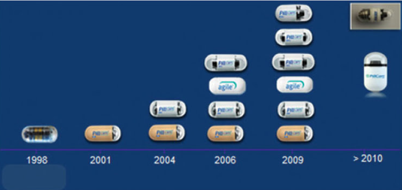 自那時(shí)起,Given Imaging生產(chǎn)了第二代和第三代小腸膠囊內(nèi)窺鏡(pillcam sb3),研制了兩代雙向食管膠囊內(nèi)窺鏡(pillcam colon2),并開發(fā)了兩代開放膠囊內(nèi)窺鏡。