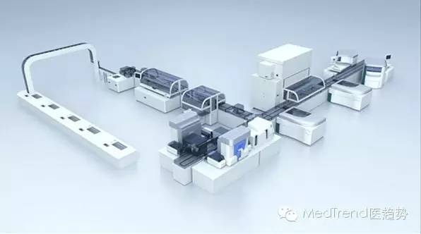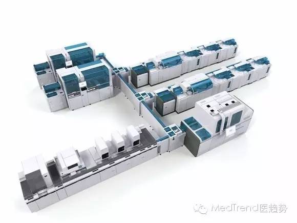通過(guò)軌道將獨(dú)立的前處理系統(tǒng)與羅氏生化免疫分析系統(tǒng)連接起來(lái),實(shí)現(xiàn)了標(biāo)本的自動(dòng)傳輸。