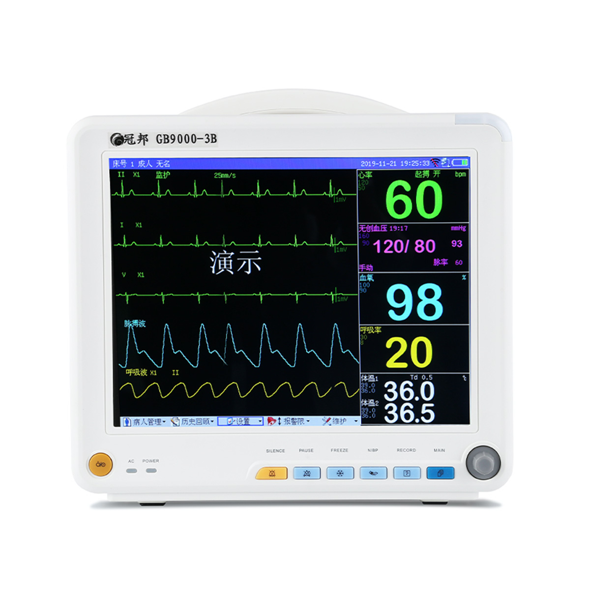 多參數(shù)監(jiān)護儀能為醫(yī)學臨床診斷提供重要的病人信息,通過各種功能模塊,可實時檢測人體的心電信號、心率、血氧飽和度、血壓、呼吸頻率和體溫等重要參數(shù),實現(xiàn)對各參數(shù)的監(jiān)督報警。信息存儲和傳輸,是一種監(jiān)護病人的重要設備。GB9000-3A多參數(shù)監(jiān)護儀適用于兒童和成人監(jiān)護,可監(jiān)測參數(shù):心電、血氧飽和度、無創(chuàng)血壓、呼吸、體溫。